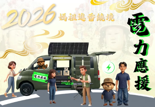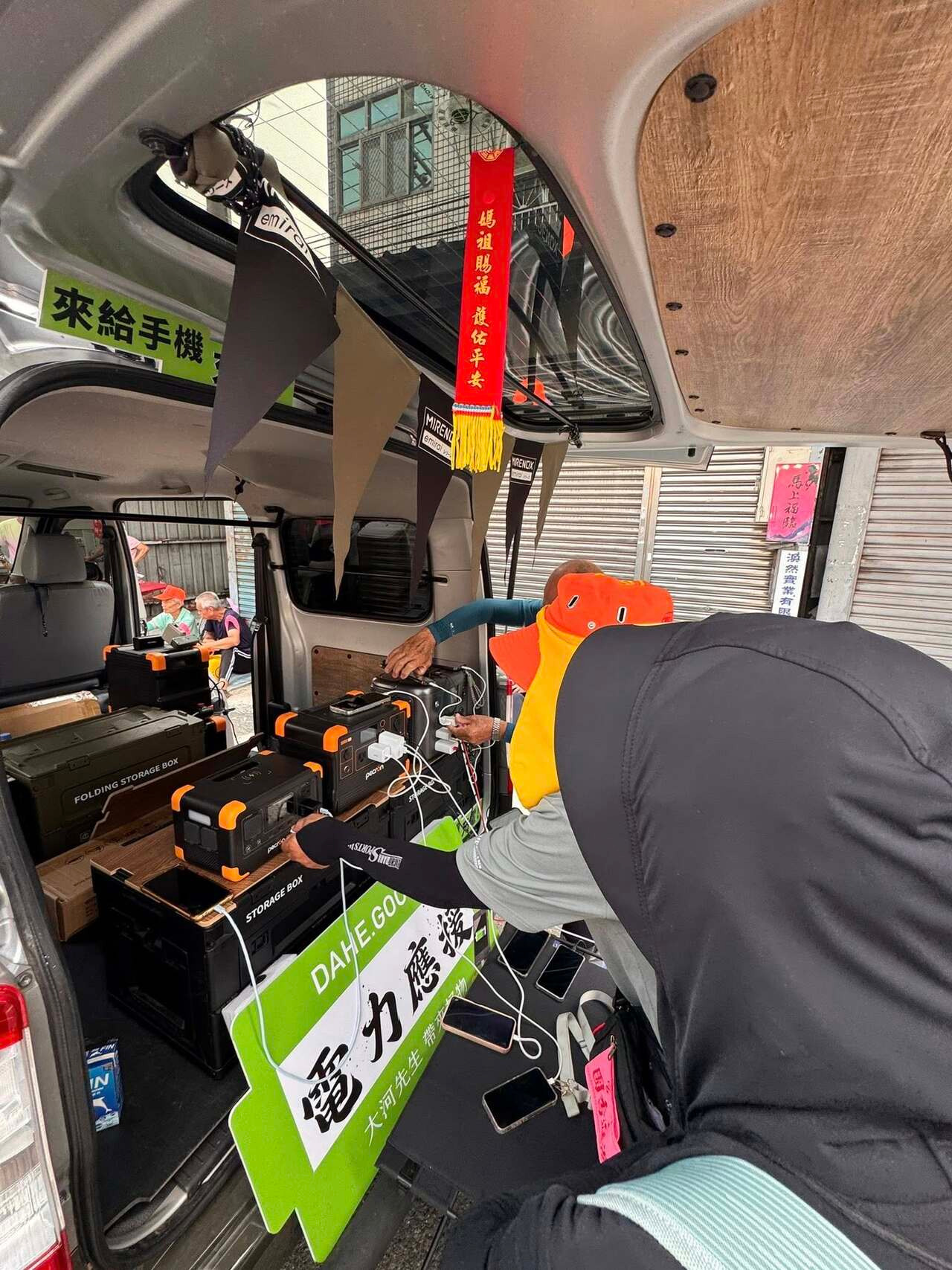 既然我們有提供電力的能力,於是我們就同事約一約,準備了一台「電力應援車」,一起去參加今年 2026 年的白沙屯媽祖進香!想說我們可以幫香燈腳們手機充電、行動電源補電,讓大家手機隨時都有電,就可以安心追蹤媽祖的 GPS 方位、放心前行。