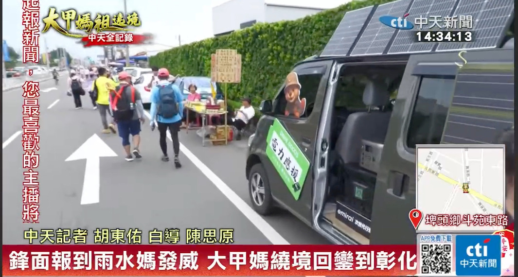 而且我們也有前往大甲媽祖遶境去做電力應援,謝謝大家不嫌棄,在大甲媽祖這邊也好多人找我們聊天唷!還被新聞直播拍到哈~